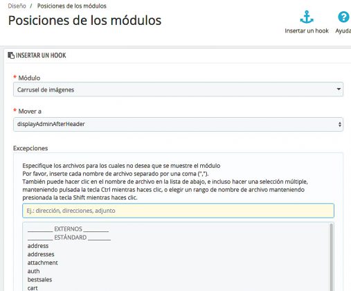 Mover un módulo a un hook en Prestashop 1.7