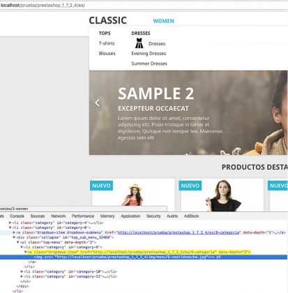Nuestro menú de Prestashop 1.7 personalizado con imagen de ejemplo
